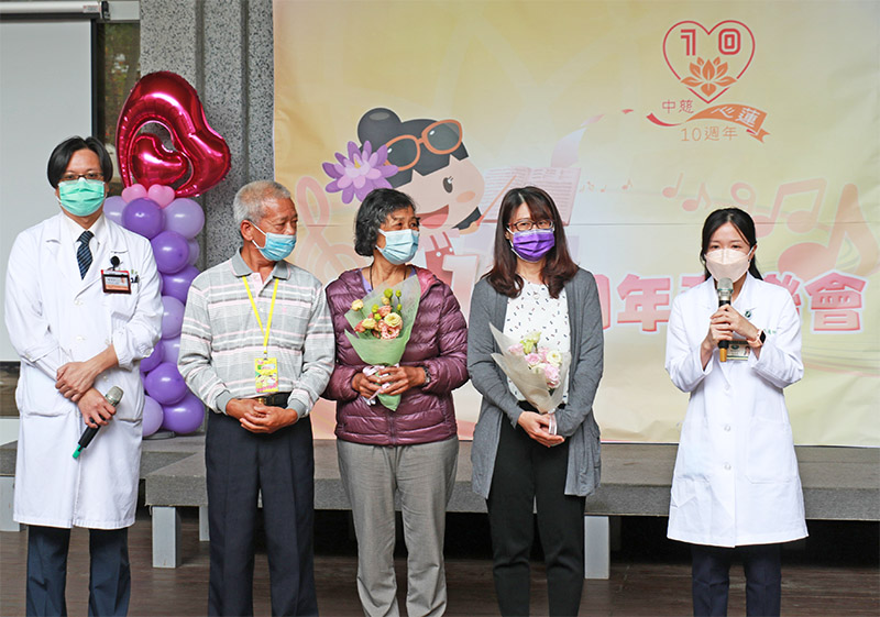 「感謝慈濟(心蓮病房)的醫療照護!」病人家屬劉雅萍在臺中慈濟醫院心蓮病房十週年感恩音樂會,代表說出所有家屬的感恩!因為醫療團隊與志工的陪伴,他先生陳明河才能安詳走完人生最後一哩路。