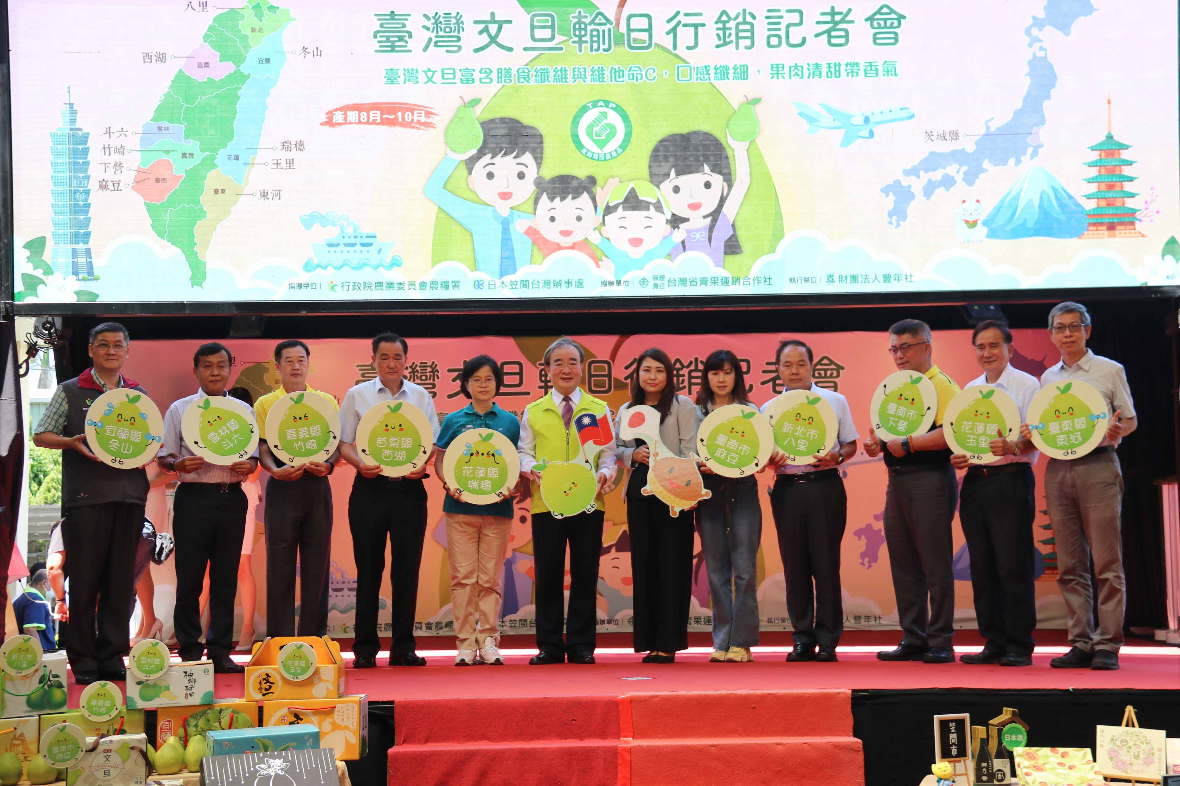 臺灣文旦汁多味美,質量俱佳,是秋節當令好滋味,為推廣至海外市場,行政院農業委員會農糧署輔導外銷業者及產地農民團體合作生產優質產銷履歷文旦輸銷日本,自109年13公噸成長至110年45公噸,成功打開中斷20多年的日本市場。本(111)年再度與日本笠間台灣辦事處合作,將營養美味的臺灣文旦供應茨城縣笠間市及大洗町內共21所學校約6,930位學童享用營養午餐水果,並設計文旦食農教育資料夾,讓日本學童認識臺灣文旦的風味、特色及產區,透過食農教育向下扎根,拓展臺灣文旦海外新市場,並建立臺灣與日本之間長久的友好關係。