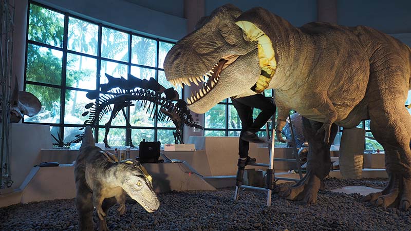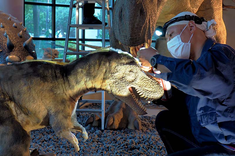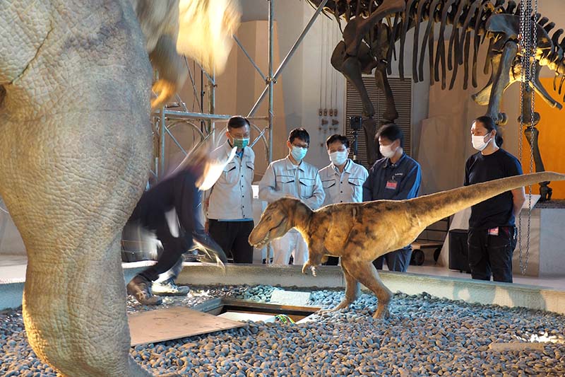 值得一提的是,科博館恐龍廳的「機械龍胞們」是向日本KOKORO公司購置,以往每年定時邀原廠技師來臺幫恐龍進行例行性保養、故障性維修。焦傳金館長指出,受Covid-19疫情影響,檢修技師來臺一趟大不易,10月鬆綁入境管制,暌違3年日本技師終於可以來臺幫恐龍「深度健康檢查」。