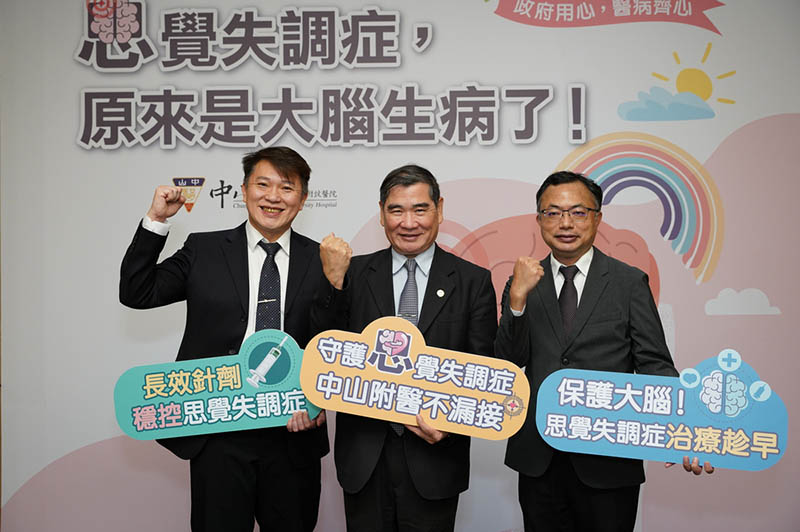 中山附醫舉辦思覺失調症衛教記者會呼籲及早發現和治療,左起為朱柏全主任、蔡明哲總院長、張正辰主任。