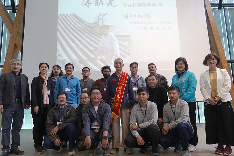 同時也舉辦「謹砌細鋪-傅明光及其土水作、瓦作技術」的新書發表會,由文化部文化資產局陳濟民局長贈書給傅明光司阜、新竹縣政府文化局李安妤局長及與會的貴賓與學員。