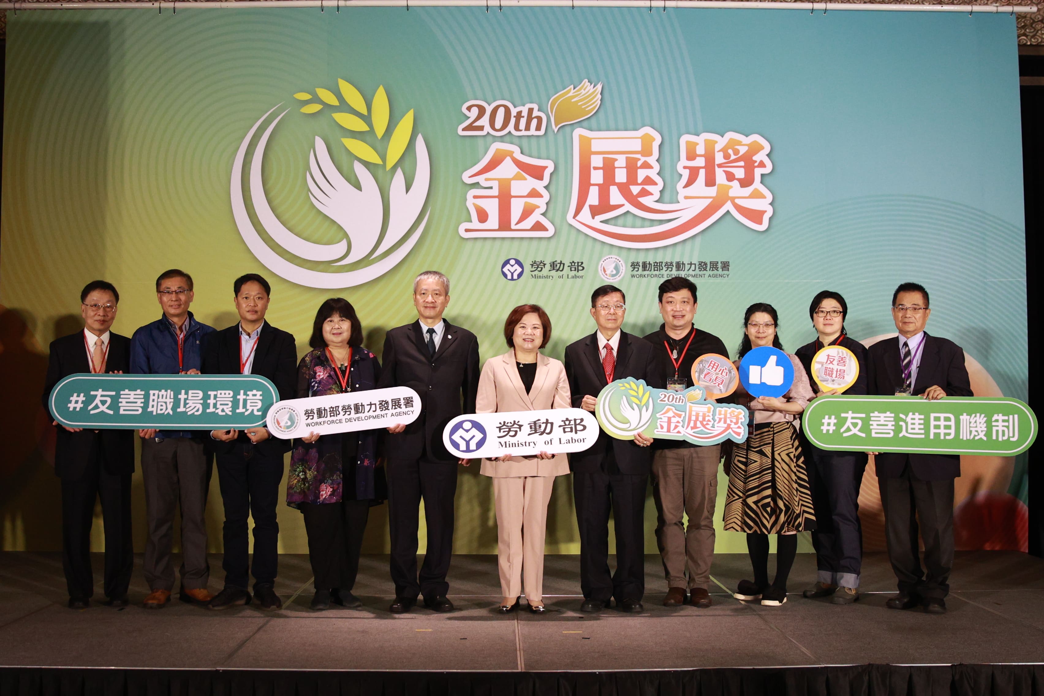 勞動部於臺北喜來登大飯店舉辦第20屆金展獎頒獎典禮,由部長許銘春頒獎表揚20家進用身心障礙者績優單位,今(111)年更首次表揚3家辦理身心障礙者就業服務績優單位...