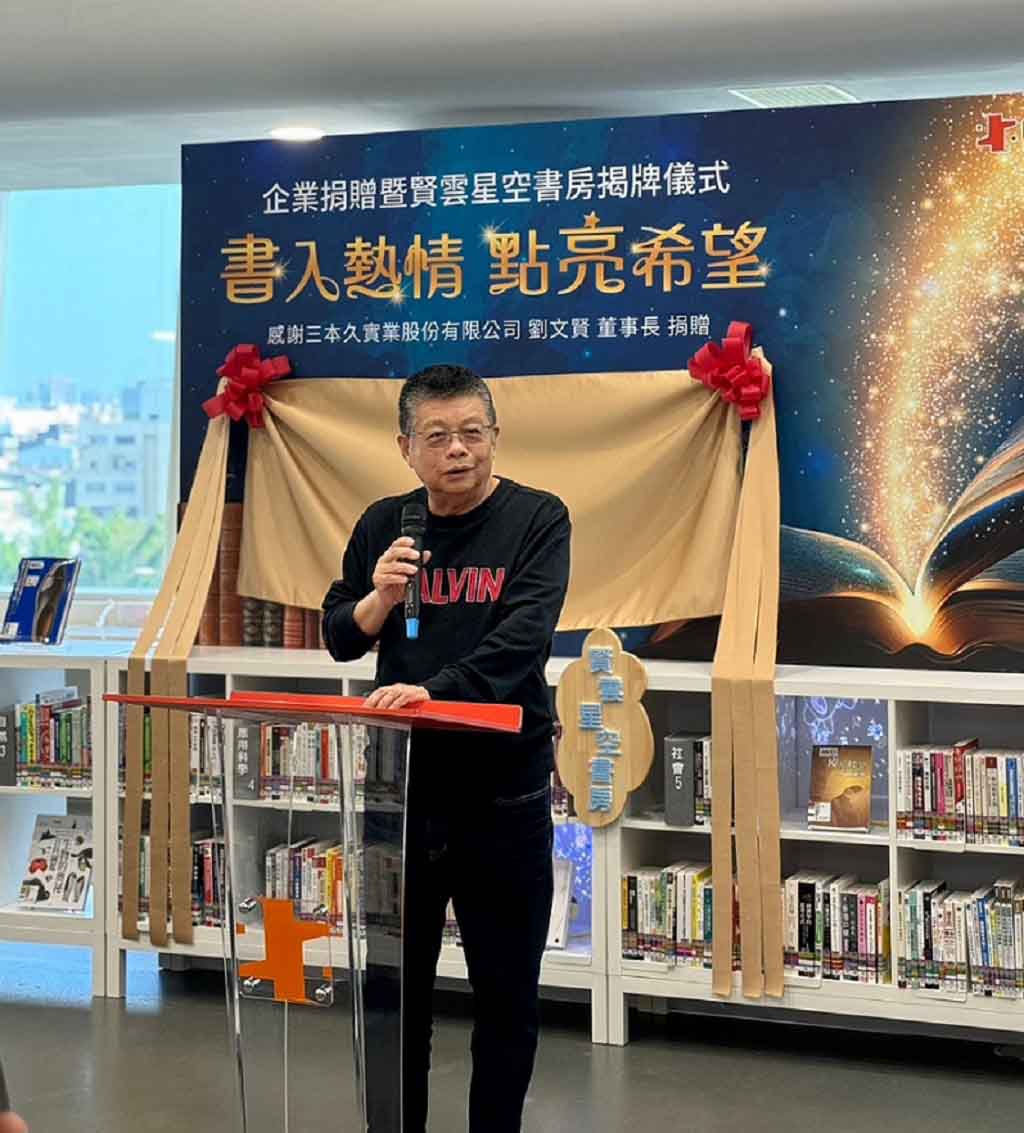 三本久實業股份有限公司劉文賢董事長致詞感謝馬館長實現心中捐書的心願