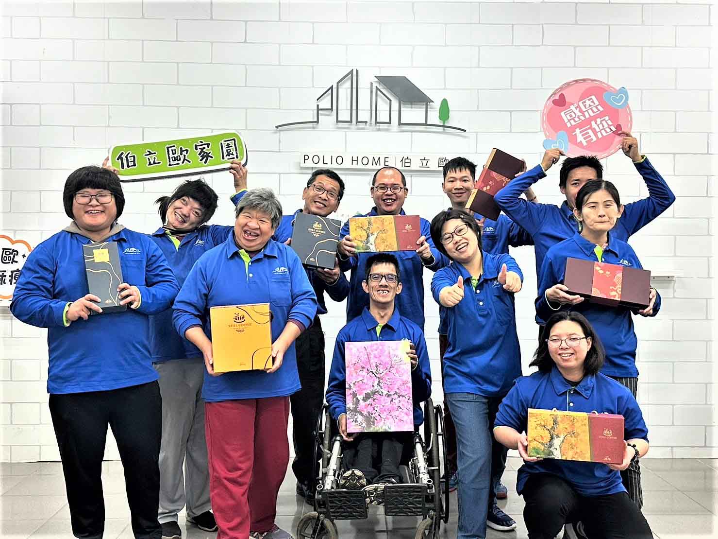 愛加倍庇護工場從3位無給職的善心人每月繳交1,000元承租鐵皮屋廠房開始,從事咖啡和茶包的包裝及銷售,啟動身心障礙者就業服務工作,逐漸發展成通過ISO 9001國際認證的印刷設計服務,照顧更多身心障礙者。工場今年嚴選四款頂級精品咖啡推出四季福滿禮盒,特以國際金獎畫家陳炳臣老師的得獎首發作品為設計元素,用細口手沖壺慢慢沖出四季變化的咖啡風情,象徵一年的圓滿福滿(壺滿)。