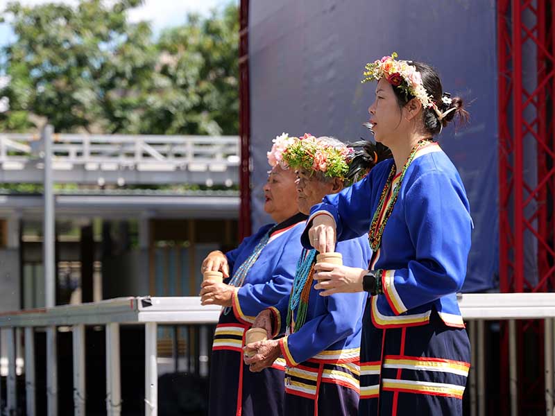 邵族女祭司(左起)陳賢美、石玉英及王麗芬為文化部文化資產園區及島嶼源流活動祈福