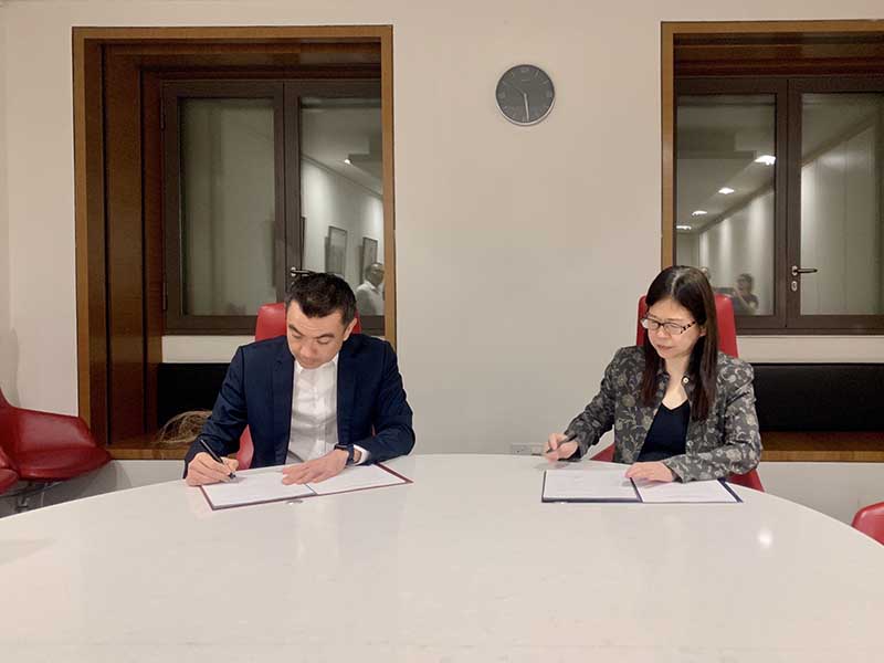 國美館館長 陳貺怡(右)與新加坡國家美術館館長 陳維德(Eugene Tan)雙方簽署合作備忘錄,正式展開兩個國家級美術館之間的合作。