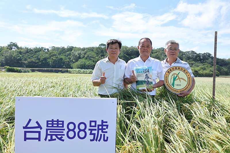 農業部農業試驗所育成稻米新品種「台農88號」,具有耐高溫又抗稻熱病、白葉枯病及白背飛蝨三大病蟲害等特性,是適合高溫天氣及友善農耕的優良品種。今日(10/25)與臺中市外埔區農會合作舉辦「台農88號栽培管理示範觀摩會」,假外埔區李明男農友田區展現「台農88號」的友善耕作管理成果。藉由本次觀摩會公開「台農88號」的優良特性以及省工省心的栽培方式,強化農民種植的信心,同時穩定農民的收益及協助農會建構稻米新品牌的利基。
