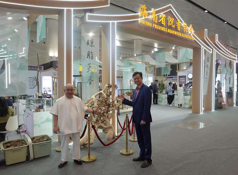 海南省沉香協會會長曾慶祝和電白沉香協會會長汪科元(右)