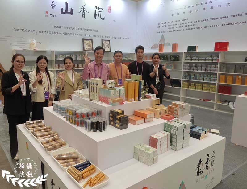 汪科元(圖中)和公司員工在2024海南沉香花梨國際大會(圖)