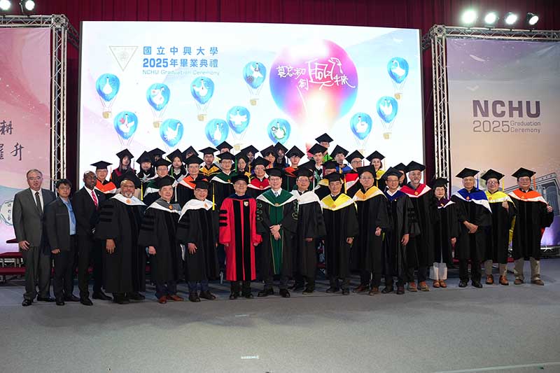 詹富智校長於致詞中勉勵學子在變局中,要保有對人類福祉的深切關注與責任。他強調,當今世界正面臨AI、氣候變遷、地緣政治與社會正義等多重挑戰,而中興人具有不懼風雨,不畏挑戰的精神,以及擁有解決問題的能力與良知,未來不僅要成為專業人才,更要成為對社會有所貢獻的關鍵角色。最後,他以「懷抱熱情,迎向世界;秉持良知,影響世界;懷抱希望,照亮世界」勉勵全體畢業生。