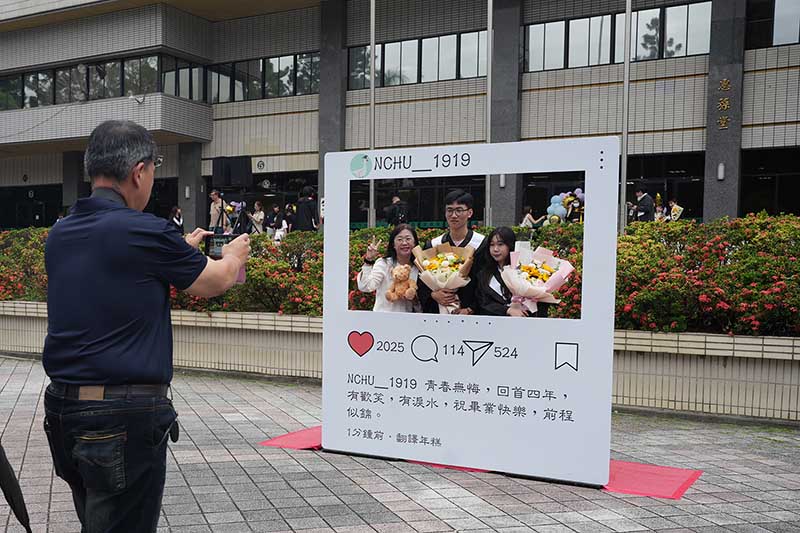興大畢典,在惠蓀堂前設有拍照打卡區