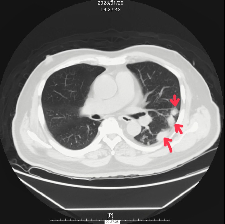 68歲蔡先生因身體不適就醫,檢查發現肺部有多個結節,先後接受肺癌與肺結核治療,病情未見好轉。經由臺中榮總胸腔部呼吸感染免疫科團隊評估,注意到他不咳不喘、症狀表現非典型,分枝桿菌中心與胸腔外科團隊審慎評估後,建議胸腔外科團隊手術切除病灶取得組織檢體。檢驗確認為肺部隱球菌感染(Pulmonary cryptococcosis),經抗真菌藥物治療後,病情明顯改善。