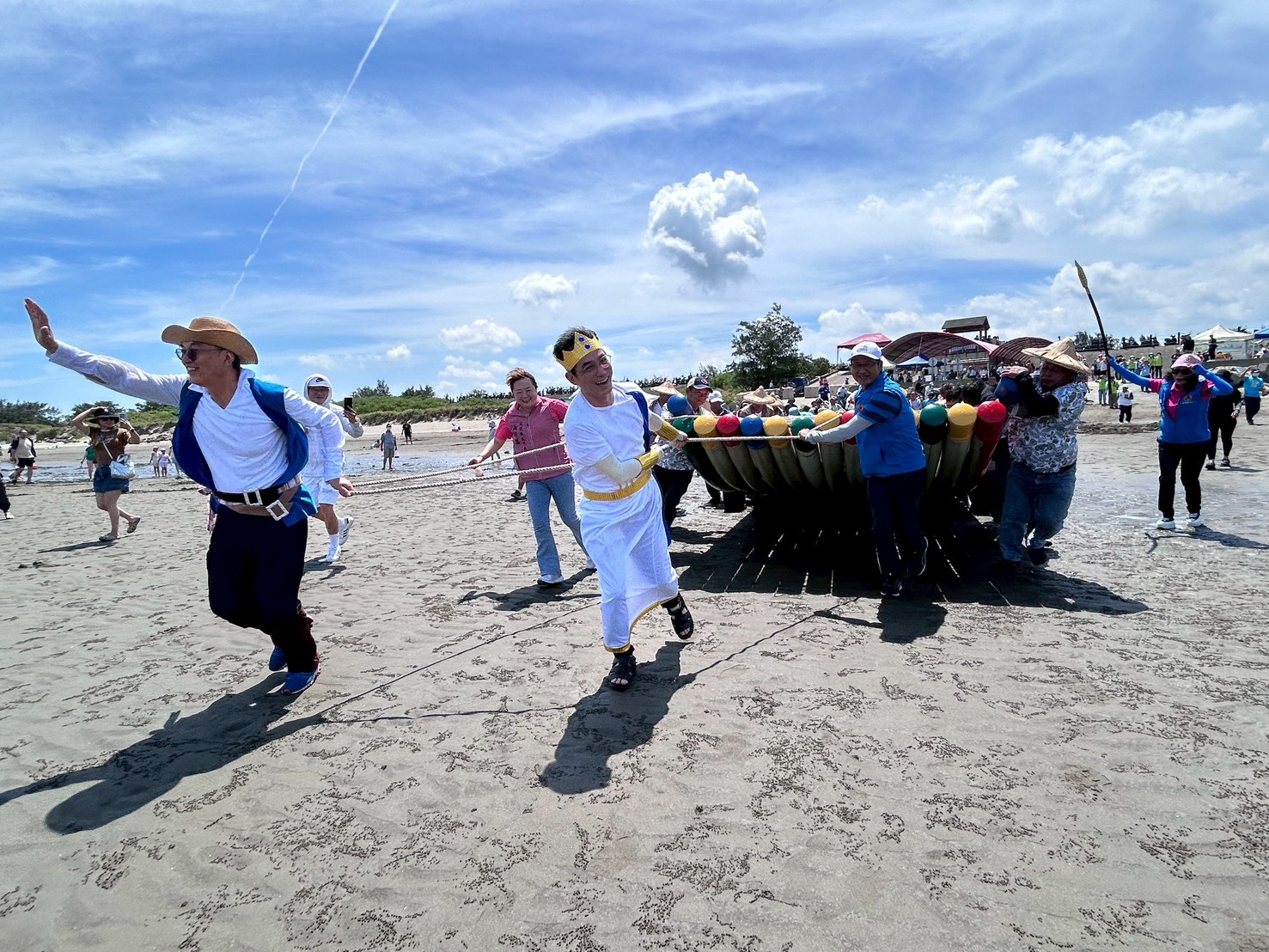今年最大亮點之一,是舉行隆重的「新船入海祈福儀式」,象徵傳統漁村對大海的敬畏與祝禱,並特別邀請地方長官及民眾扮裝成船主與古早漁夫,為新船下海祈福儀式加持,讓活動更具文化意涵與趣味互動;並在百人牽罟的壯觀場面下,參與者將從陸地模擬開始學習牽罟技術,了解潮汐與氣候判斷等傳統智慧,接著親自走上沙灘共同牽網。此舉不僅喚起集體記憶與合作精神,更實地傳承「人與海共生」的永續理念。