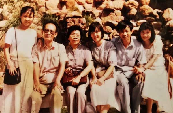 夏兒(左一)和她的爸爸、媽媽、嫂子、哥哥、妹妹。