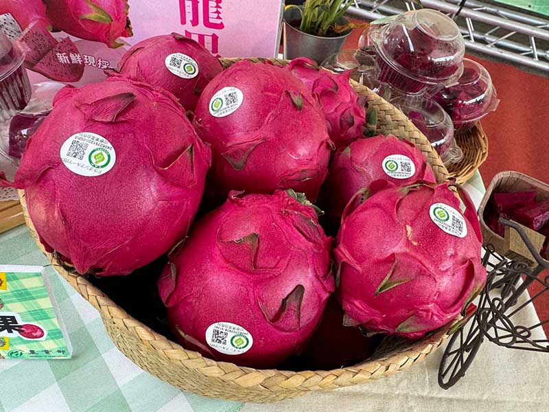 紅龍果上貼有外銷用產銷履歷貼紙