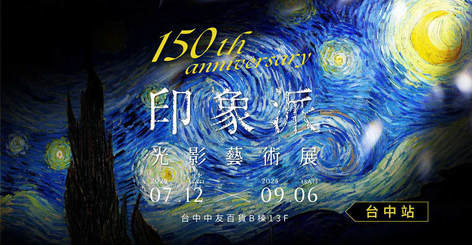 《印象派150週年光影藝術展》終於在萬眾期待下,於7/12在中友百貨B棟13樓展演中心正式開幕,為中台灣藝文界注入嶄新能量。