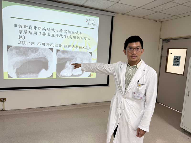 衛生福利部臺中醫院牙科林佳詠主任表示,每年季節交替之際,民眾免疫力下降,蛀牙併發蜂窩性組織炎患者就會明顯增加二到三成,像最近一周就有4個二十歲到五十多歲患者,這些年輕人或中壯年都以為蛀牙是小病,有空再處理就好,但其實嚴重蛀牙不及時處理,可能併發蜂窩性組織炎導致菌血症、嚴重者甚至會併發腦膜炎、心內膜危及性命。