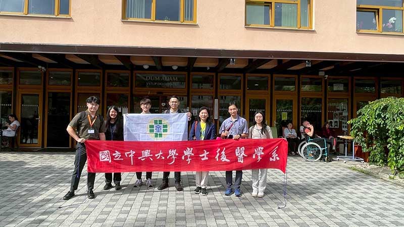 童醫院 蔡青劭 副院長(右三)與教學部 吳再坤 主任(右二),率領國立中興大學後醫系學生參訪養老院觀察並學習捷克在高齡醫療、長照系統與社區復健上的實務經驗