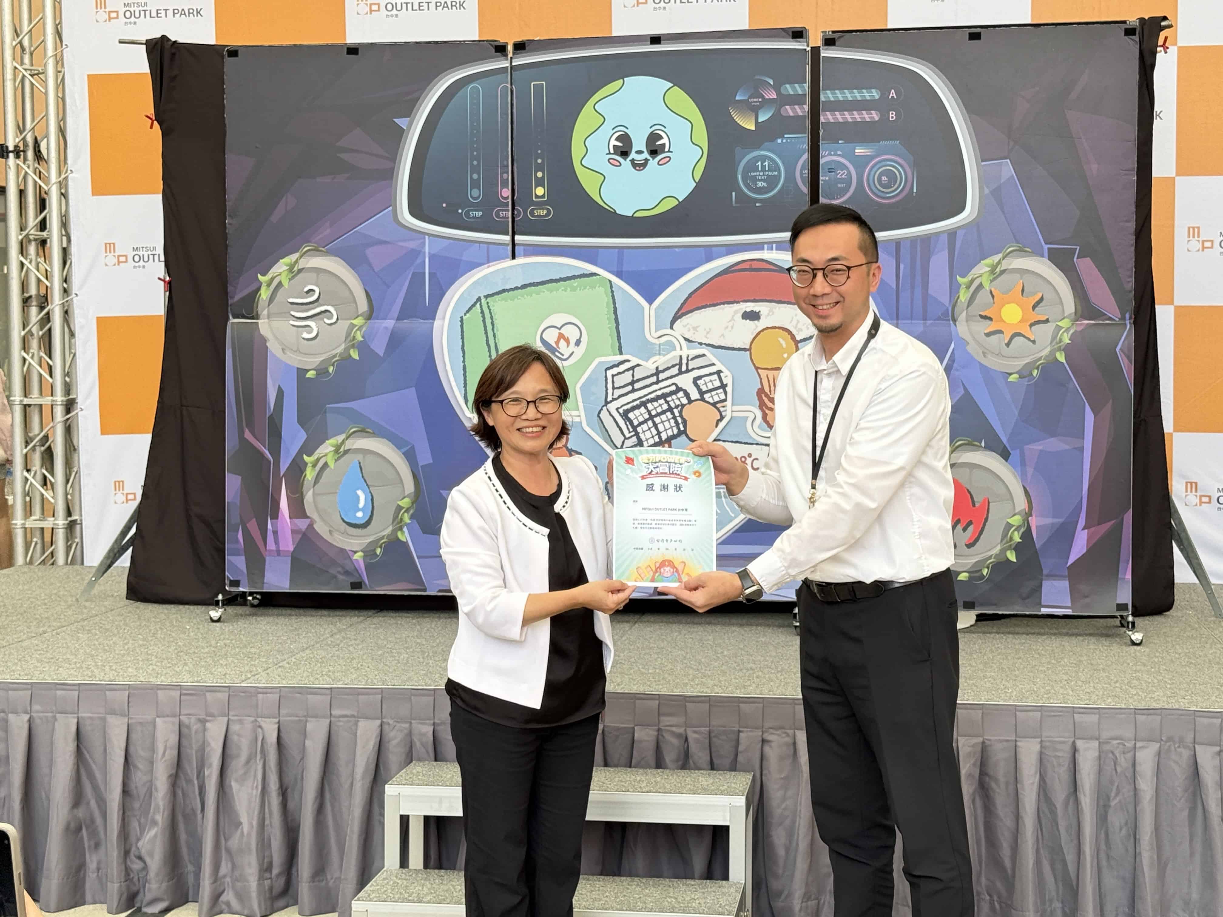台電「我愛地球媽媽」15年來持續透過生動有趣的行動故事劇,讓孩童們在歡笑中學習節能減碳與綠能知識。台電於MITSUI OUTLET PARK台中港舉辦「我愛地球媽媽」節電故事劇公益演出,由台電公眾服務處處長袁梅玲,與現場超過百位大小朋友們共襄盛舉,並由萬花筒劇團團長「米苔目哥哥」帶領孩童唱跳全新改編的活動主題曲。