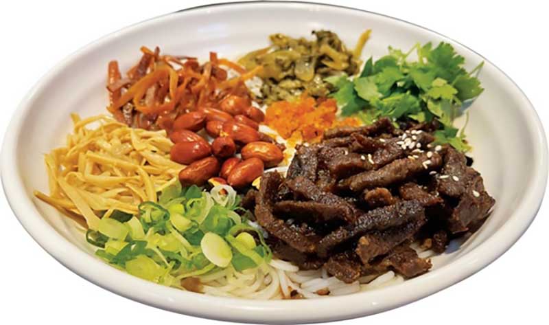 海南腌粉:肉絲幹脆香、配花生碎與酸菜。
