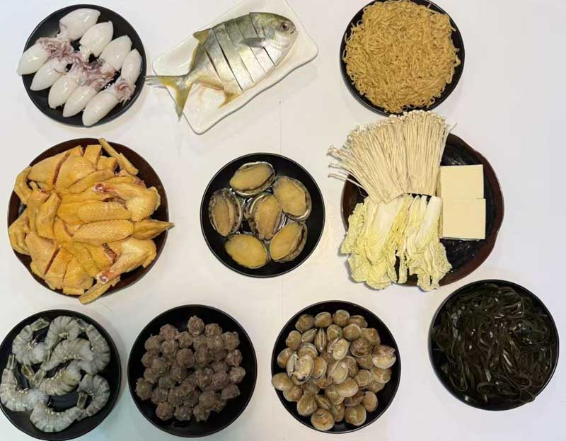 開鍋一刻,金黃透亮的湯面微微起伏,帶着天然果酸與米香的層次;鮑魚、蝦、白鲳魚、鱿魚、海白、生蚝、雞肉依次下鍋,海帶絲、金針菇、大白菜、豆腐、海南粉或雲吞面随後“收味”,酸、辣、鮮、甜在口中疊加,令食客“越吃越上頭”。與傳統陳醋的厚重不同,糟粕醋的酸輕盈而有彈性,兼具開胃與提鮮效果,尤其适配海鮮。