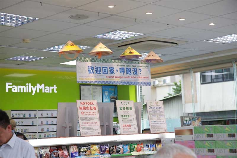有感於店舖附近有工業區及住宅區,廖嘉妤店長觀察到移民工常常會來消費,便邀請越南籍店舖夥伴申成達共同發想,為商品設計印尼語、越南語及英語三種語系友善標示,在店舖入口處、櫃台上方張貼多國語打招呼語,並特別於貨架上標示「無豬肉食品」識別卡,甚至在ATM旁設置多國語系反詐資訊。這些細節設計,讓移工與新住民在購物時不再受限,能安心挑選所需商品。