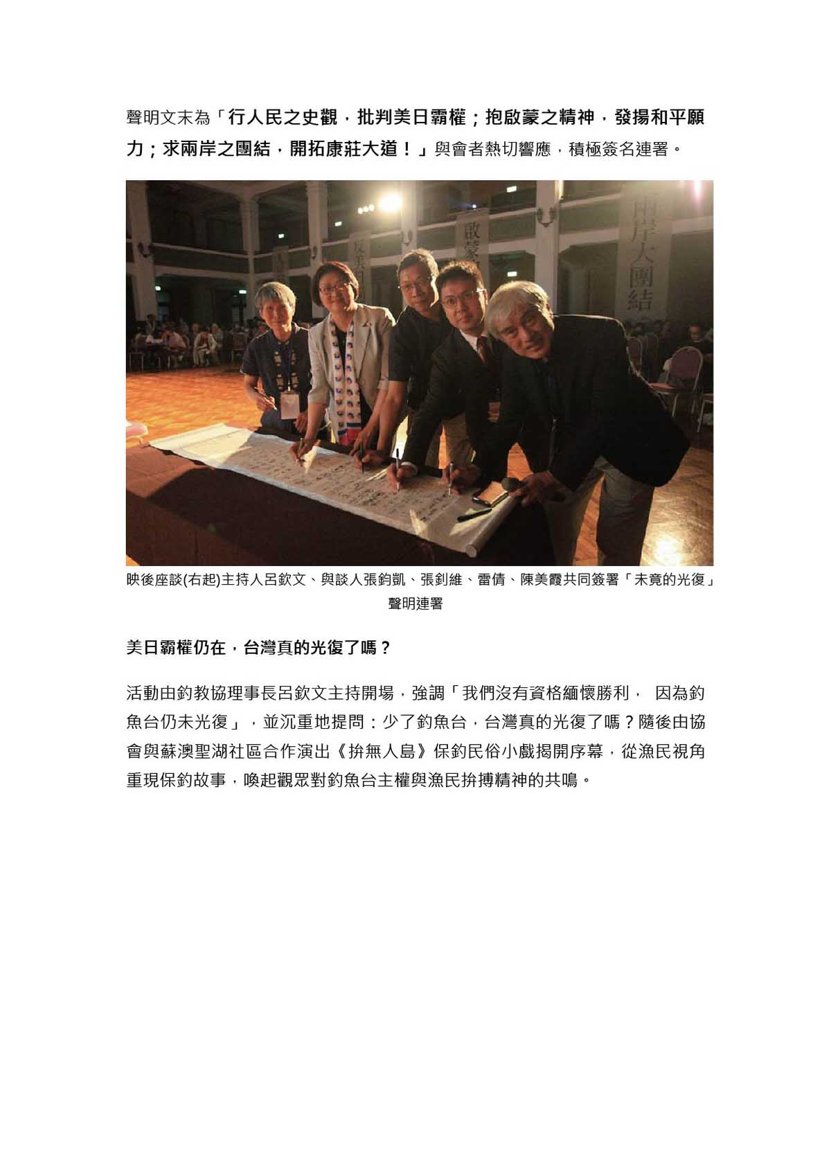 《未竟的光復:保釣運動進行式與光復八十的當代反思》紀實影片放映暨座談活動