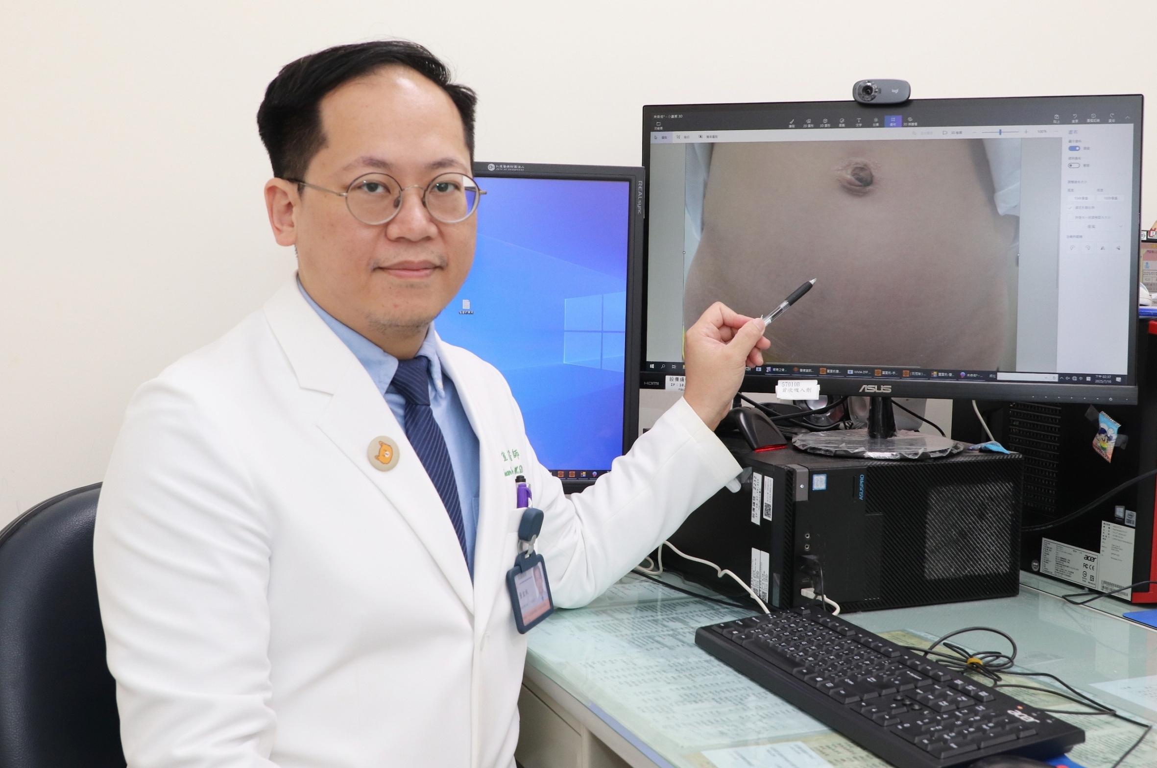 張媽媽幫4歲兒子小寶洗澡時發現他右側鼠蹊部常常鼓起一塊,站著的時候特別明顯,以為是吃太撐了,而且小寶活潑好動,最近常抱怨上廁所或洗澡時,右側鼠蹊部有明顯腫塊,躺平有時可推回。張媽媽帶小寶到仁愛長庚合作聯盟醫院(大里仁愛醫院)兒童外科董宣杋醫師門診求診,結果確診為腹股溝疝氣,由兒童外科、麻醉科和兒童內科團隊聯合照護,採用單孔微創腹腔鏡疝氣手術治療,術程僅約30–50分鐘,術後當天就能下床走動與飲食,第二天出院。一週後回診,張媽媽開心地說,真的沒有疤痕,連阿公阿嬤都說像沒開過刀一樣!