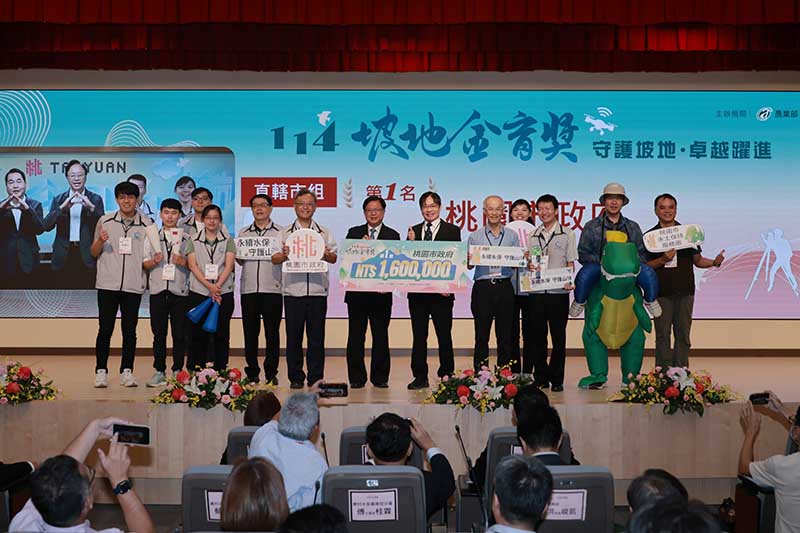 今年度直轄市組由桃園市政府榮獲第1名,臺北市政府與臺中市政府分列第2、3名;縣市組則由宜蘭縣政府拔得頭籌,嘉義縣、苗栗縣、屏東縣、雲林縣及彰化縣依序獲得第2至第6名。另頒發激勵獎予桃園市、宜蘭縣及彰化縣,以表揚其持續努力與亮眼表現;同時肯定6個水土保持服務團、6個績優鄉鎮市區公所,以及3個績優警政機關在第一線上的卓越貢獻。典禮亦表揚五位個人獎得主,從服務超過30年的水保前輩,到僅服務6年便獲得肯定的新秀,充分體現水保專業精神的傳承與新世代的接棒。