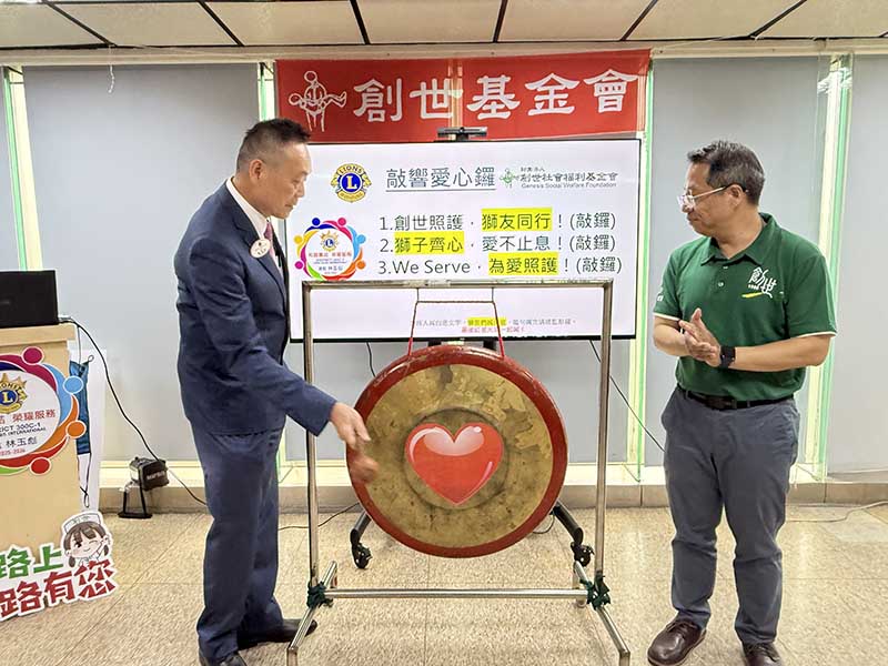 國際獅子會300C-1區總監林玉彪帶領敲響愛心鑼