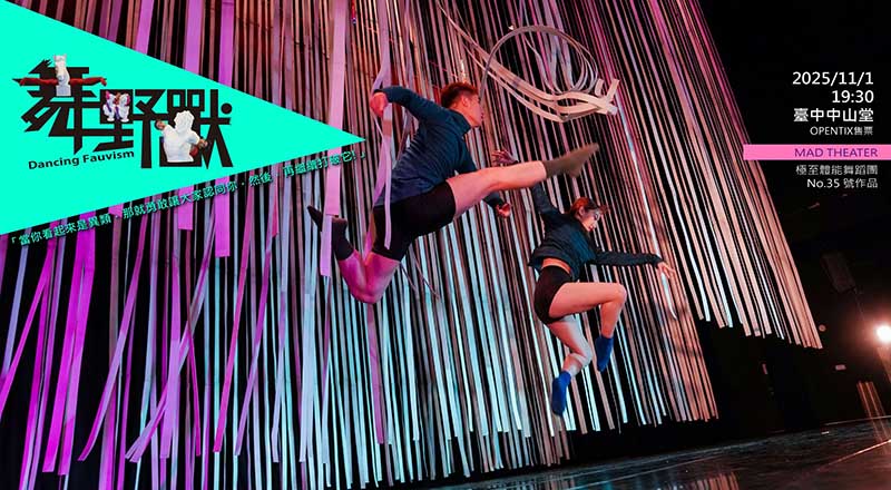 臺中中山堂駐館團隊「極至體能舞蹈團」,將於11月1日星期六於中山堂帶來全新大劇場創作《舞野獸》,以大膽色彩與跨界手法,首度將馬諦斯「野獸派」的藝術精神融合舞蹈語彙。