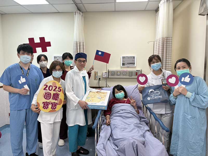 11點36分由32歲廖姓媽媽剖腹產下2384公克的小壯丁,由婦產部魏添勇醫師接生,是媽媽的第二胎,不僅家人歡喜迎接孩子的出生,也是童綜合醫院2025年迎接的第四位國慶寶寶。