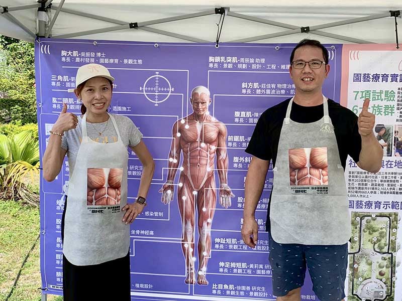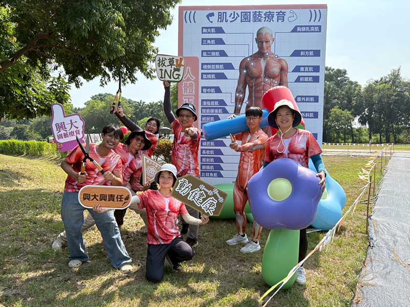 中興大學園藝學系吳振發教授團隊長期與彰化基督教醫院、亞洲大學附屬醫院等醫療院所合作推動「園藝療育」研究,將園藝活動融入健康促進與疾病復健之中。今年團隊受邀參與「2025臺灣設計展」,10月10日至26日於彰化溪州公園特別設置「肌少園藝療育區」,以科學化的運動原理結合園藝動作設計,讓民眾體驗「在種花、翻土中鍛鍊肌力」的創新健康新模式。