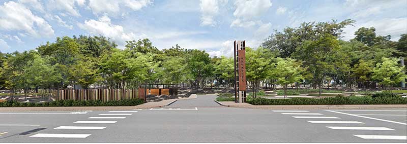林業保育署臺中分署表示,東勢林業文化園區前身為大雪山林業股份有限公司,擁有60年代東亞地區最大製材廠。過去園區周邊設有紅磚圍牆,不僅遮蔽視線,也使園區入口不易辨識,經常造成遊客錯過。這次工程將以全新設計手法重塑園區形象,並揭露原本埋設於地下的東勢「本圳」水道,沿園區邊界營造圳水流經的淺水道與開放水域,展現地方水文與林業歷史的緊密關聯,打造兼具文化與生態意象的「大雪山旅遊軸帶入口」。