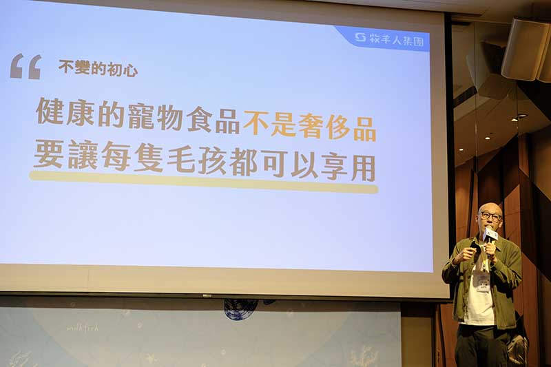 圖二 牧羊人集團執行長 孫宗德 於「漁我同行」論壇發表專題演講,分享如何以國產漁產征服海外毛孩。(牧羊人集團-提供)
