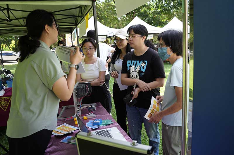 全日精彩的系列活動包含:NUST USR成果展暨公益市集,匯集USR計畫年度成果,期促進社會共融;綠川導覽則實地走訪西校門旁的綠川沿岸風光,深度認識水環境;懷舊纏花DIY手作與興大學生社團阿卡貝拉社、長虹吉他社、聲揚吉他社等樂團表演。