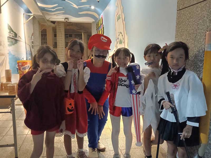 而看著殭屍家庭、骷髏幽靈、南瓜祖孫、瑪利歐母子、冰雪奇緣Elsa姊妹等各式造型穿梭在闖關遊戲間時,夜晚的澳底校園頓時充滿童趣與奇幻氛圍,萬聖節的魔力在歡笑與探索間悄然升溫,每個人都掛著柔軟的笑容,教育與陪伴正悄悄發酵。貢寮區區長柯建輝出席致詞時,肯定學校將家長會交接典禮與萬聖節活動結合的創意構想,不僅富教育意涵,也促進家校與社區的連結,讓教育更貼近生活,也更真實有活力。