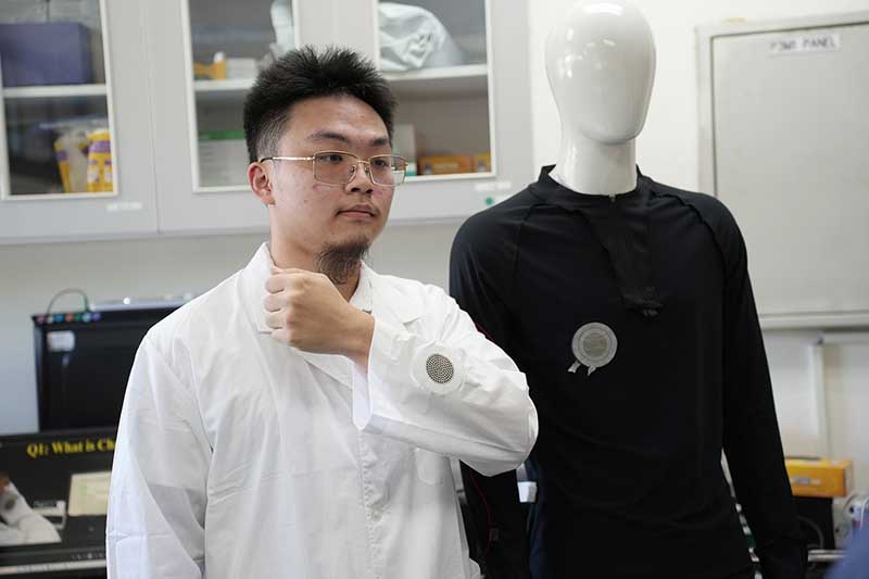 中興大學材料科學與工程學系 賴盈至 教授研發有聽覺的衣服 可聽診、溝通與AI聊天機器人對話