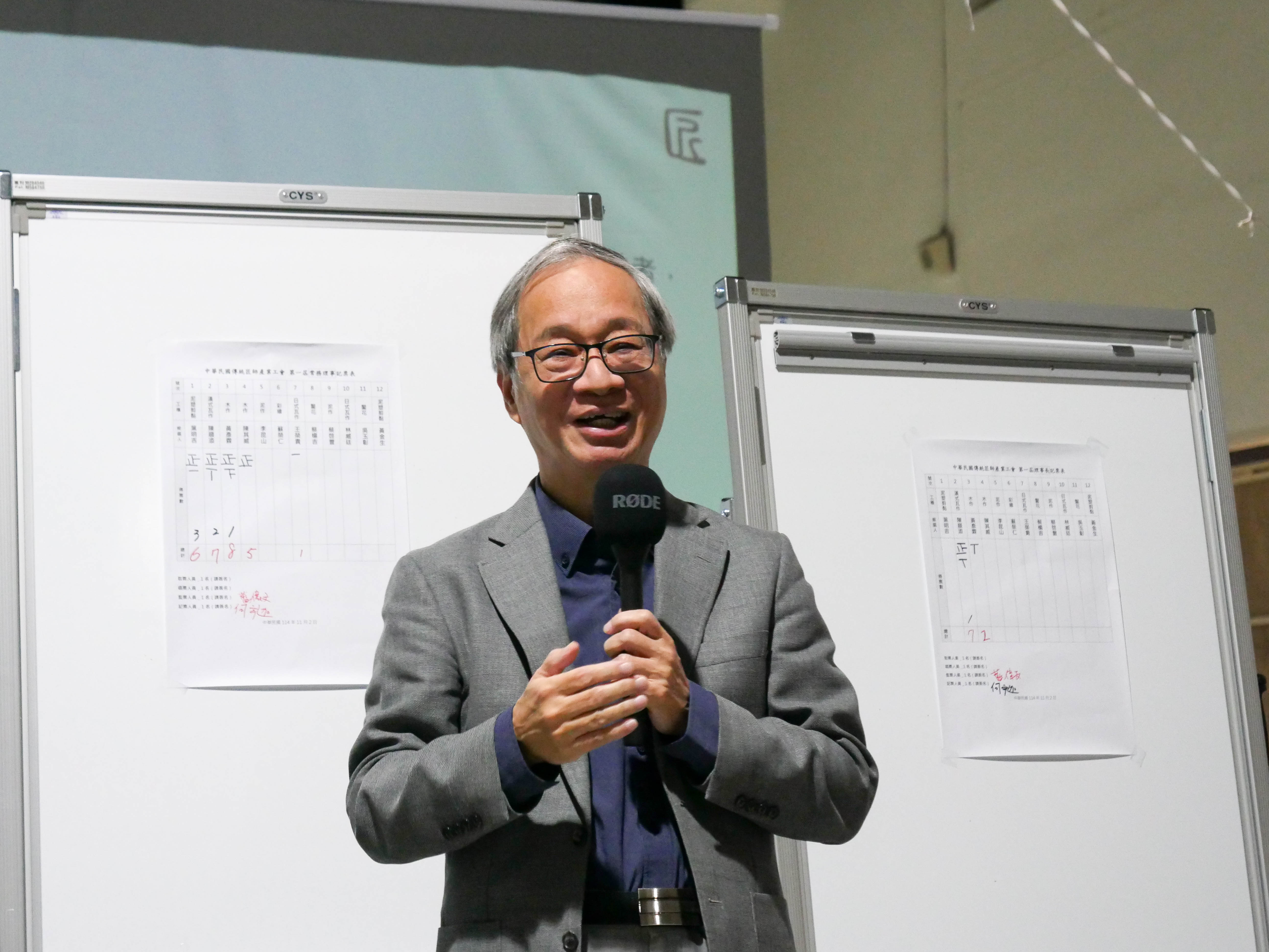 今天共選出9位理事、3位監事;9位理事中,由泥塑剪黏葉明吉匠師、漢式瓦作陳順添匠師、木作黃彥霖匠師當選常務理事,並由漢式瓦作的陳順添匠師當選第一屆創會理事長。