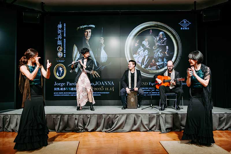 今天記者會現場,樂團帶來一段結合長笛、吉他、擊樂和佛朗明哥舞蹈的精彩演出。團長楊容喬表示,侯黑是許多大師們最愛合作的長笛手,7年前就曾力邀他來擔任表演嘉賓,後來他獲得葛萊美獎,旅居巴黎的西班牙導演Emilio Belmonte也耗時多年為他拍攝了紀錄片《出神入化》,橫掃歐洲各大影展,11月7日晚上將在歌劇院角落沙龍播放,報名可上「Ciao,JOANNA /遇見喬安娜」臉書粉絲專頁。