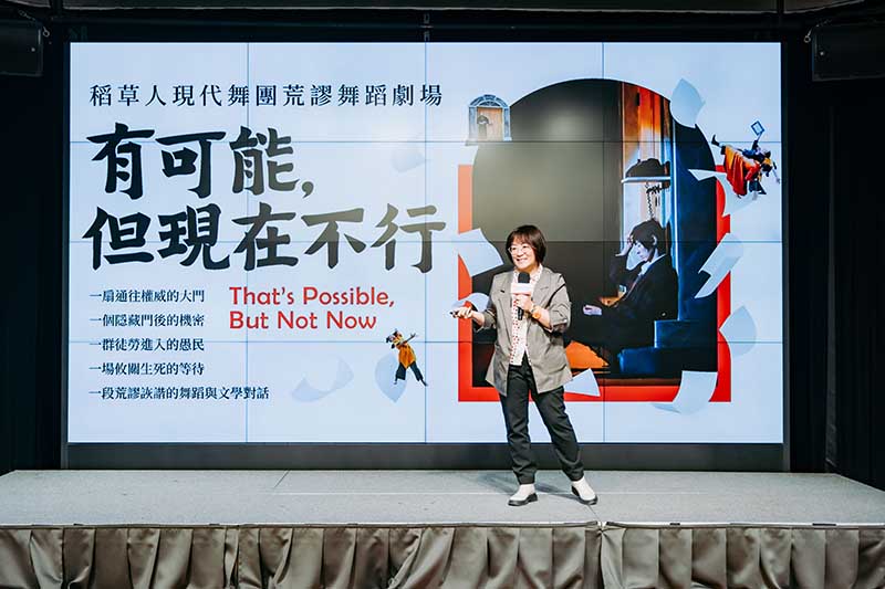 歌劇院11月藝術好朋友分享會 稻草人現代舞團古羅文君介紹荒謬舞蹈劇場《有可能,但現在不行》,透過黑色幽默的誇張肢體,體會存在的荒謬與矛盾。©臺中國家歌劇院,攝影:李建霖