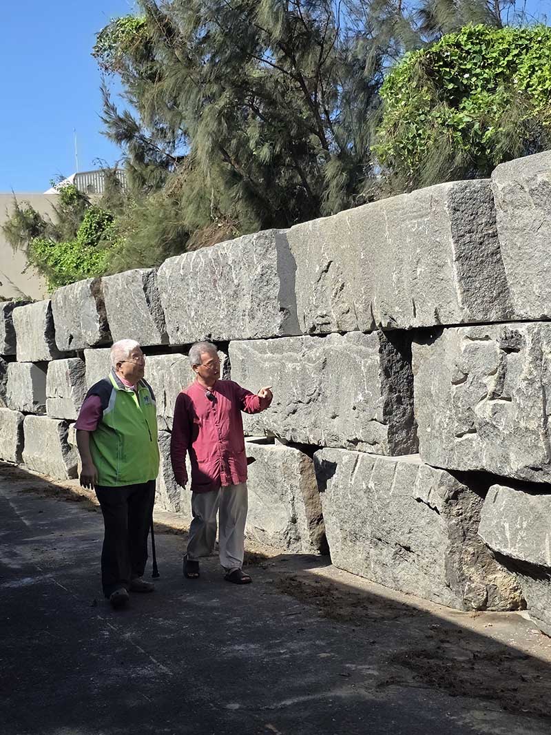 據林家民董事長表示,他捐助花崗石20貨櫃共80顆,最重達七公噸一顆,最小三公噸,廟方以不到12小時(一天半的工作天)完成堆疊,工程單位執行速度及團結力令他十分驚訝,故專程前來現勘,而擋風效果也出乎意料的完美,尤其廟方配合光電公司蓋了1,800平方公尺的涼亭,上方放太陽能板,下方規劃為〝望月公益廣場〞,提供公益團體辦理義賣、嘉年華、婚宴廣場(一次可辦300桌)使用,遇假日更將計劃安排燈光秀、露天電影、夜光市集。