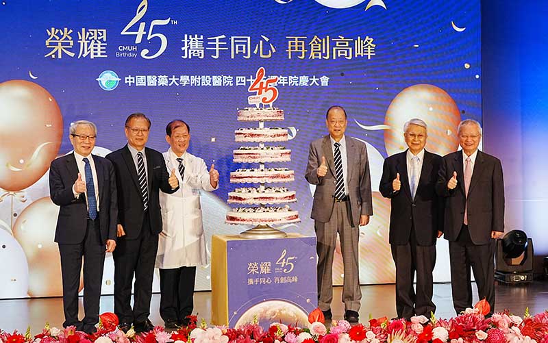 中國醫藥大學附設醫院(14)日舉辦第45週年院慶大會,以「榮耀45 攜手同心 再創高峰」為主題,表揚傑出主治醫師、住院醫師、資深員工、志工與企業志工,向全體同仁的奉獻與努力致上最高敬意。院慶活動中特別舉行慶賀輝煌成就的慶祝儀式,全體同仁與貴賓齊聲高唱《生日快樂》,現場洋溢著感動與喜悅的氛圍,見證中醫大附醫邁向新里程的重要時刻。延續院慶喜悅,中醫大附醫將於11月19日晚間假臺中國家歌劇院舉辦院慶音樂會,由全台唯一由醫療院所員工自組的交響樂團獻上動人樂章,以音樂傳遞人文關懷與幸福職場的精神,為45週年慶典再添璀璨。