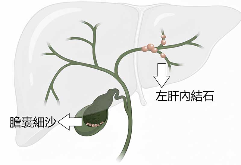 59歲陳女士長期承受間歇性腹痛,九月間於外院住院治療仍無改善,出院後轉至臺中市立老人復健綜合醫院。於肝膽腸胃科由內科部部長賴學洲醫師安排腹部超音波及核磁共振檢查,確診為左側肝內結石合併慢性肝內膽管炎及膽囊細沙併慢性膽囊炎,後經一般外科主任曹連誠醫師評估,安排 3D 立體內視鏡左肝切除加膽囊切除手術。患者術後恢復良好,第二天即可下床行走,自理生活,成功擺脫惱人的腹痛與長年不適。