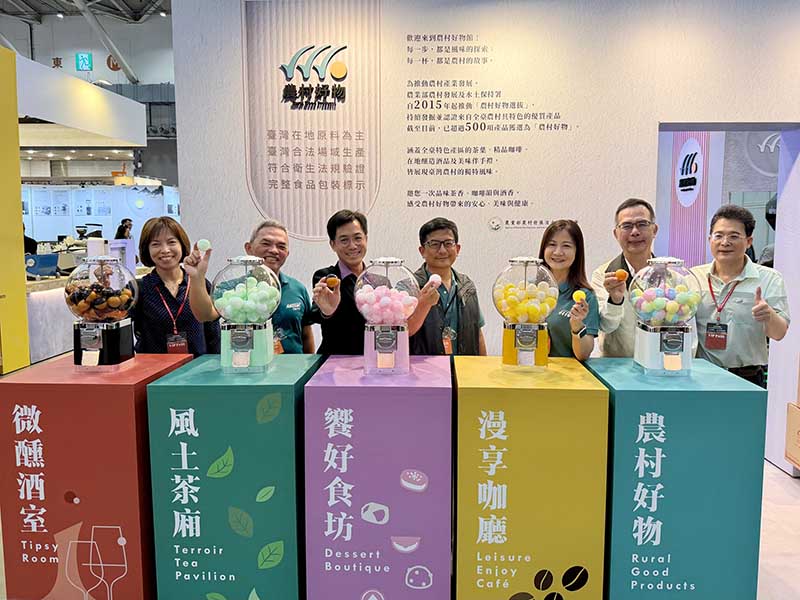 本次農村好物館集結12家優質品牌參展,包含東成茶葉、正福茶園、林旺製茶廠等3家茶業者;BONBONS甜點與九日良田等2家點心品牌;綠點酒莊、蘭輝酒莊、好飲學院等3家酒品業者;公主咖啡、TGC台灣咖啡莊園、花囍田咖啡莊園與螢之光咖啡等4家精品咖啡品牌。以四大概念店呈現其風味特色,讓民眾在展區內即可一次走訪臺灣多樣的風土風味。