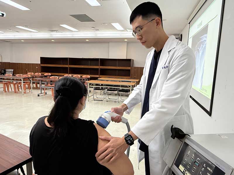 提醒接受體外震波治療後應該多加休息,治療一週內禁止服用人蔘、泡湯及熱敷,避免增加疼痛狀況;治療後如果有紅、腫、疼痛的狀況,可冰敷15到20分鐘,如果疼痛可服用普拿疼止痛。