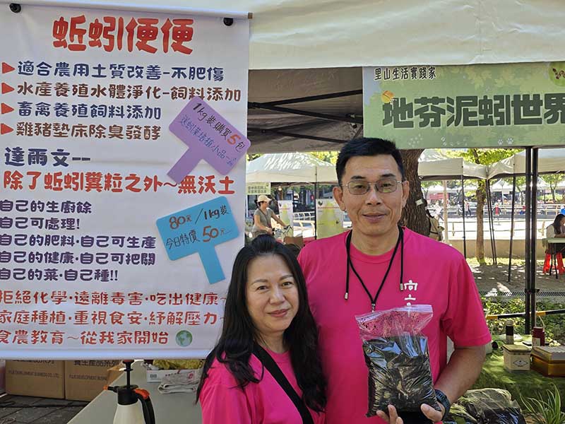 今年市集以「田裡有腳印」為主題,與社團法人慈心有機農業發展基金會攜手合作,共有100個單位參與,創下歷年新高。現場規劃七大展區,除了來自林業保育署臺中分署輔導的里山標章及友善石虎農作標章農友,更有40攤綠色保育標章農友共襄盛舉,攤位上琳瑯滿目的友善產品,從標章稻米、甜柿、葉菜類,到以綠保食材製作的熟食蔬食點心、生吐司、茶葉與多樣加工品,吸引民眾駐足選購,用「吃」的選擇實踐對土地的善意與健康永續的生活理念。