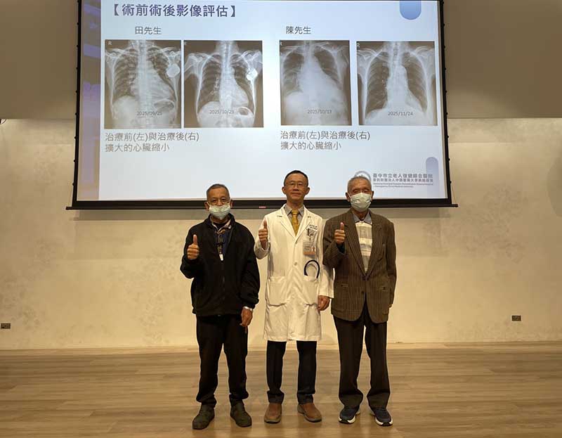 74歲田先生與80歲陳先生,近一年來陸續出現腳部水腫、走路易喘、無法平躺睡覺等症狀,原以為只是年紀大、活動量減少所致,直到症狀加劇、反覆住院,甚至一度需長時間臥床休息,輾轉就醫無效後,經本院心臟外科蔡峯鈞主任確診兩位病患皆罹患嚴重「僧帽瓣閉鎖不全」,因未及早治療導致心臟擴大與功能衰退。蔡主任以豐富經驗執行開心手術修補僧帽瓣後,皆大幅改善症狀,重新找回健康呼吸與恢復生活自理。