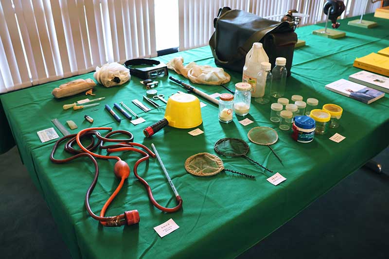 捐贈儀式現場展出連日清博士生前常用的採集、研究用具及相關著作等。圖片提供/國立自然科學博物館