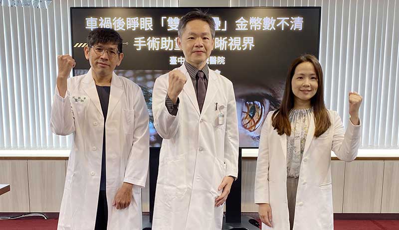 臺中榮總眼科部及口腔醫學部合作救治一名因車禍造成全臉骨折合併左眼眶底骨折的25歲建